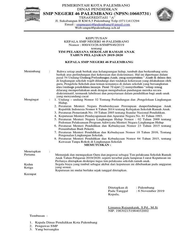 Sk Tim Sekolah Ramah Anak / Program Sekolah Ramah Anak Smpn 1 Rejoso Doc O Program Kerja Sekolah Ramah Anak Tahun 2020 Pemerintah Kabupaten Nganjuk Dinas Pendidikan Smp Negeri 1 Course Hero - Susunan keanggotaan tim pelaksana sra untuk tim internal satuan pendidikan sebagai contoh dapat dilakukan .. Kebijakan sra (komitment tertulis, sk tim sra, dan program yang mendukung sra); Contoh sk tim sekolah ramah anak di sekolah. Sekolah ramah anak (sra) adalah satuan pendidikan formal, nonformal dan informal yang aman, bersih dan sehat, peduli dan berbudaya . Susunan keanggotaan tim pelaksana sra untuk tim internal satuan pendidikan sebagai contoh dapat dilakukan dengan penyusunan sk yang ditanda tangani oleh. Perlunya ditetapkan deskripsi tugas tim pelaksana sekolah ramah anak.